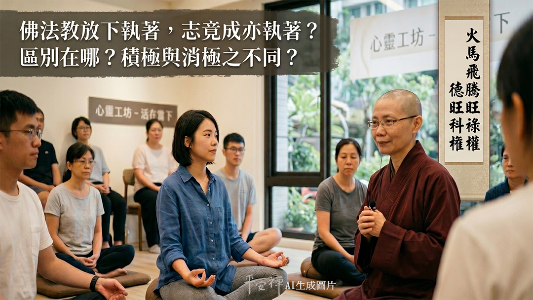 問︰佛法教我們放下「執著」,但俗話說「有志者,事竟成」——這不也是一種執著?這兩者的區別在哪裡?對我來說,一件事情要不要把它做好?是消極和積極的不同。