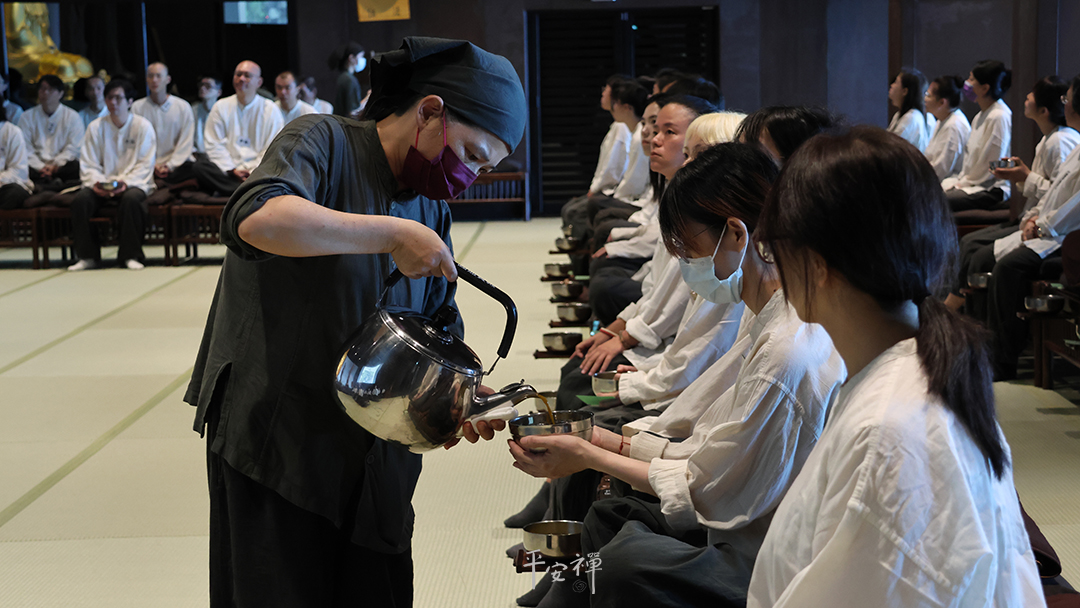 座落在農田間,這個占地1000坪、沒有大門的園區,24小時對十方開放;入口左側有兩面水牆,右側的養蓮圓石每天開一朵蓮花,兩年來不間斷;前方入眼是一座長方形藍色水池,水池上的步棧道最後兩步在水池中鋪設了四個磨坊圓石,除更添設計巧思,也在提醒來客「回家,收攝身心,注意腳下」,另一方面也巧妙地隔絕了機車、腳踏車進入。