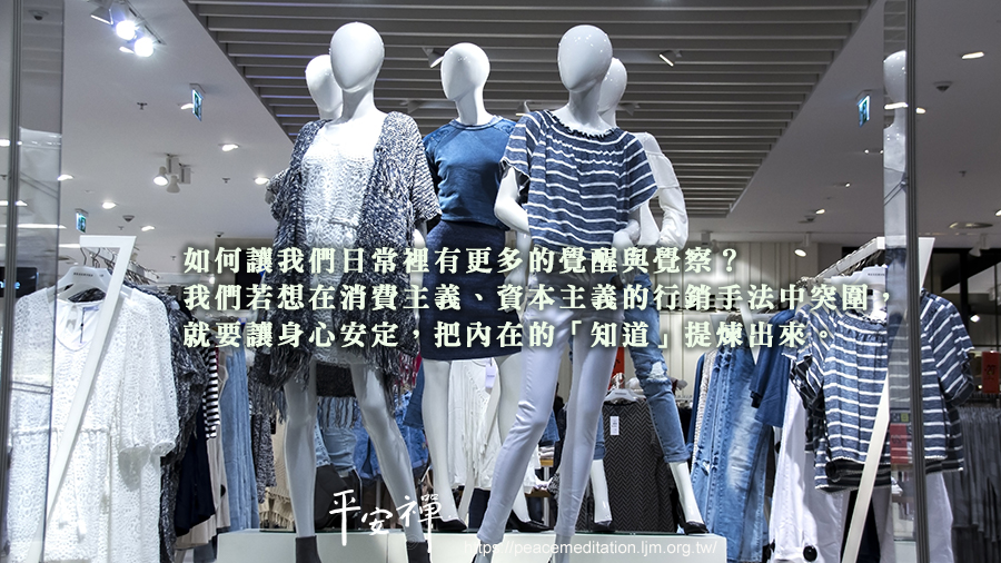 或許我們總能堅持的完成持誦日課,卻在鋪天蓋地的優惠浪潮中,做出了過多的消費,如何喚醒我們的靈性?如何讓我們日常裡有更多的覺醒與覺察?我們若想在消費主義、資本主義的行銷手法中突圍,就要讓身心安定,把內在的「知道」提煉出來。禪修能穩定情緒,讓腦筋更清楚,最終明心見性,讓自己不為外在事物掌控而不自知。要喚醒內在的靈性,持續的練習禪修,覺察與調伏的工夫越深,每個當下就越清明,於是,我們對自己、周遭、大地的愛,都在每個當下的覺知中,如實驗證。