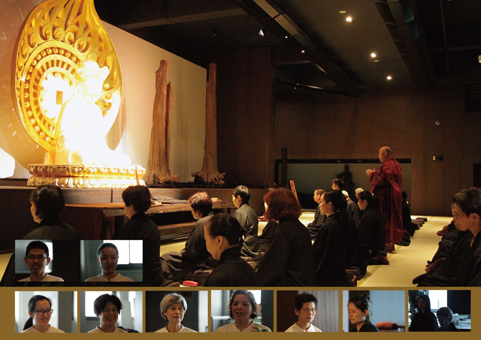 禪坐時學員王玉惠發現自己的心抓得太緊,無論坐得如何,誠如廣純法師所提點的:『不要去想這支香到底做得好不好,每一支香都是新的開始。』而學員王寶蓮則分享:『我之前的人生是黑白的,這條命是師父救回來的。因為禪修可以看到自己的脾氣、習氣,還有不足的地方。以前被罵被欺負就只能壓抑,壓抑到最後就變成憎恨心。師父教我們轉念,我很努力在轉念,可是沒那麼容易洗滌,有時打坐或誦經時,憎恨心還是會跑上來。原來心要明、要空,還是得不斷努力與用功。轉念真的很重要,我從不會到現在彩色的人生,都是跟師父學的,學到現在就是覺得很滿足很快樂。』